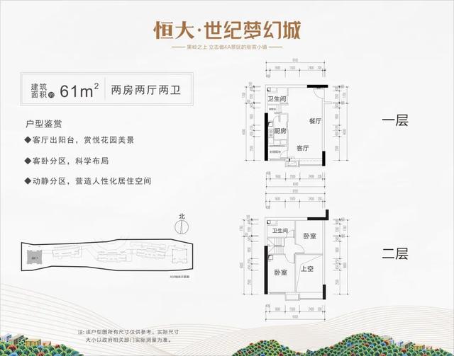 约61㎡-两房两厅两卫丨客卧分区,科学布局
