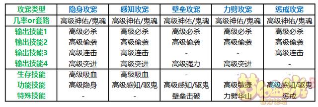 3. 感知攻宠、壁垒攻宠和惩戒攻宠拥有高级感知技能,可以替换为高级驱鬼。模板号里的4只可驱鬼宠里,3只为攻宠。