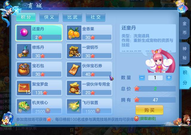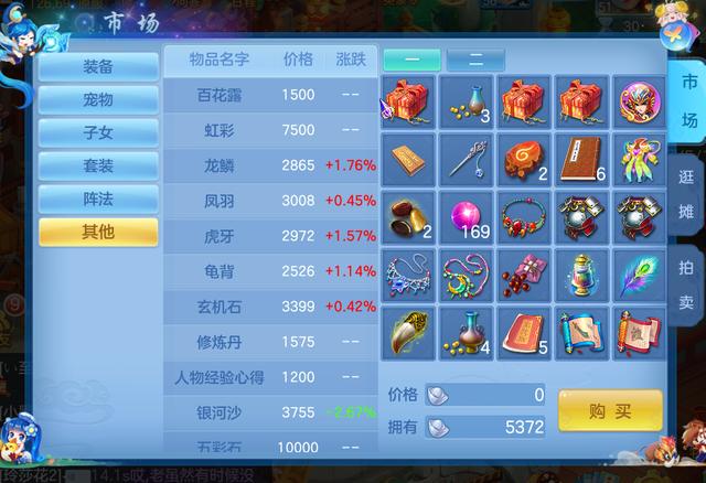 在这些资源中,铜币、银币非常重要。银币可以在市场中购买宠物要诀、阵法、人物打造材料等提升实力;铜币可以在摆摊市场购买丹药、附魔符等;还有就是金币,可用来购买坐骑、头像染色券等等。