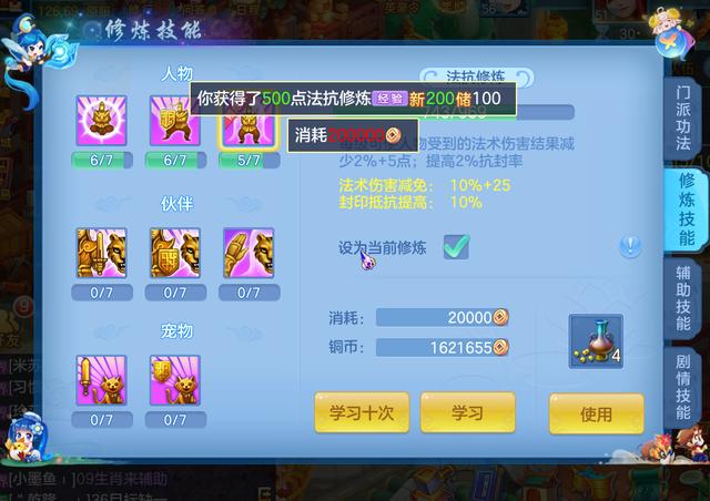 人物经验就不用多说了,是玩家提升到等级的资源。而修炼经验不同于人物经验只作用于玩家角色提升等级,它与角色整体实力、伙伴、宠物密切相关,是游戏中比较重要的的成长渠道。修炼越高,能力提升越强。不过萌新小伙伴也不必担心,《神武4》手游中有很多修炼经验的获取渠道,比如说"丝绸之路",获得大量修炼经验的同时还可以提升活跃度。