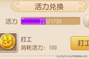 活力可以分为4个用途,一个打工,打工一次赚100金币,帮派技能又分为很多。然而临时符不同的门派不同的效果,然而同心结送给别人,会获得一笔经验。