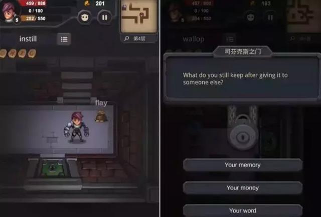 就这样,开发者通过将单词内置在关卡场景中并提供背诵奖励的方式,试图让玩家们在勇闯地牢的同时,记住那些枯燥无聊的词汇。玩到后面,玩家们开始认真地讨论过关技巧和单词拼法,画风已经和正常游戏大相径庭......