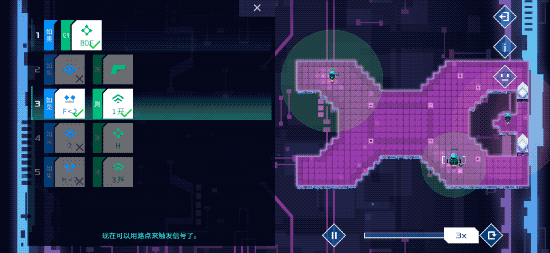 比如一开始,玩家要先学会的是用一套指令来设置移动路径,随后加入“多线程”思想,利用信号控制多个机器人的行为,还有许多其他规则,比如指令的优先级自下而上,所有指令自带循环,一旦运行就不受玩家控制等等。