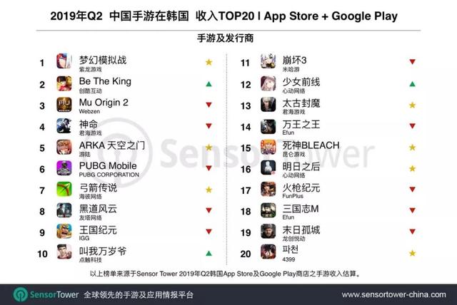 第2季度,中国手游在韩国市场继续发力,多款“新秀”入围收入榜。紫龙游戏的《梦幻模拟战》以第2季度吸金超过1500万美元,一跃夺得国产手游在韩国收入榜的冠军,在韩国手游畅销榜排第8。