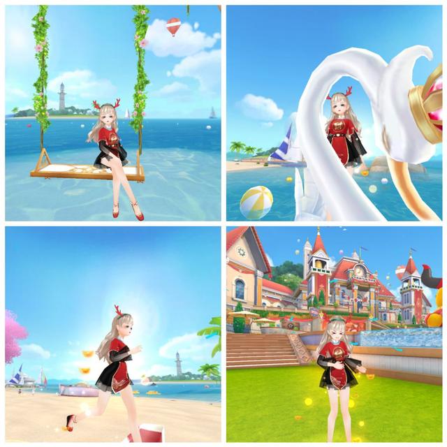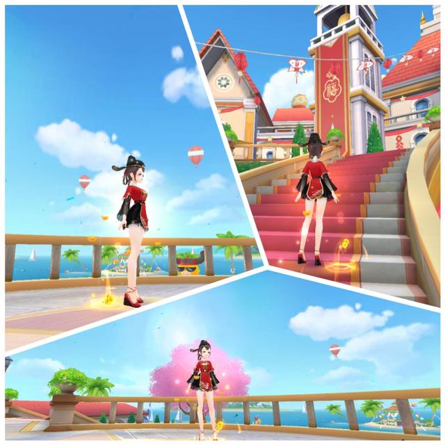 棕色的齐刘海,戴着金镶玉的乌纱帽。 红色的古风短裙主色黑纱内衬,金丝镶边,腰间系着黑色缎带编织的腰带做为装饰。红色的高跟鞋更添一丝喜庆气息,这绑带的设计太现代风了吧~感觉古代女子的裙子也不会这么短,所以咱们给它搭配偏现代风格的发饰看看,是什么样子的效果。