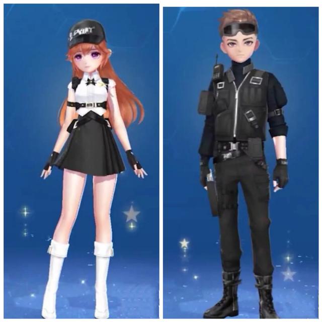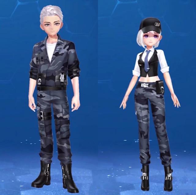 激活荣耀勋章就能获得这套迷彩服。迷彩服也称作训服,是由绿、黄、茶、黑等颜色组成不规则保护色图案用于伪装的服装。不过这套像是特种兵的作训服,男装内穿白色的短袖,配上迷彩的外套袖子半卷,裤子已经被无视不记,因为这双军靴是真的有点格格不入,可能这只是套休闲裤的迷彩衣只是用了迷彩图案而已。女装的发饰格外好看,白色的短发戴着黑色的鸭舌帽,上衣是白色衬衫套着黑色的马甲,系上蓝色的领带,有点成熟的妩媚,下身的迷彩裤和军靴,整个人看起来就是两个字形容,精神~