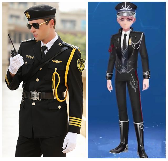 这套衣服有点军阀的味道了,说的是女装,男装啊!你也看见了,真的不是我想吐槽昂,这真的就是保安服嘛!那种比较高端的小区,行吧!我等下放对比图给你们看,(吸取了上篇文章的经验,这次我直接上图,免得有些小伙伴说翻不到我文中所提的衣服。)其实男装换个发型还是挺帅的,这双鞋子真的把衣服拉低了好几个档次。害~