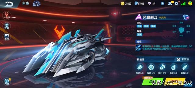 19年,剃刀升级版A车(风暴剃刀)正式上线,相比于老车剃刀来说,风暴提升了剃刀的转向与防撞性能,排位喜欢撞人的玩家可以考虑选择风暴剃刀。