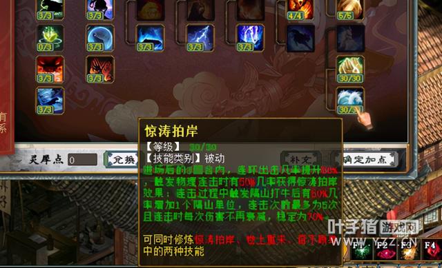 注意:上面三个技能都很变态,但是奋不顾身、惊涛拍岸、卷土重来只可以选择其中的两个。