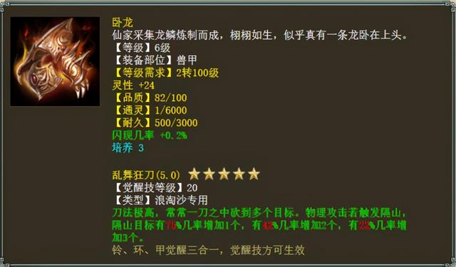 第三次,专属觉醒乱舞狂刀,这一次加成让浪淘沙在神兽攻宠中脱颖而出。