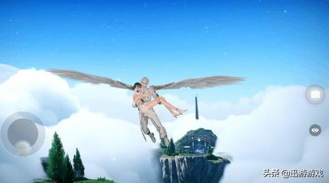 此外《天谕》手游还加入了同样互动感十足的双人飞行,可说是双人,其实受累的只有一个……这也就给那些想要在游戏中邂逅一段情缘的玩家一个很好的机会,来营造出浪漫的氛围,前提是选一个应景的翅膀。