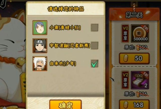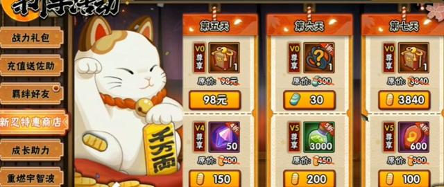 而且除了忍者礼包以外,还有本来168金币才可以购买到一个高级招募券的情况下,在新手活动当中只要花费同样价格就可以购买两个高级招募券,这些对于新玩家来说是十分友好的,而且无论是50金币购买五十万铜币,还是10元可以直购扦插之术和水龙卷等几个强度高的秘卷都是很好的选择。