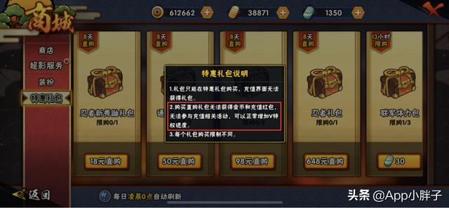 不过,最近策划天天一直在被玩家吐槽,一方面是说奖励不如以往,还有一点就是各种氪金的礼包出现,比如首次出现的648直购早期的高招A忍礼包,里面还有80个高招券的设定,说实话,这类的礼包对于我这样的老玩家或者是新手平民玩家是不会考虑的,大概的目标人群就是新区氪金大佬或者是一些开服有段时间的氪金大佬,前者是为了招募到更多忍者,后者或许是为了快速升星。