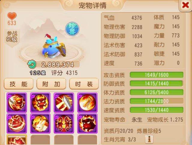 根据游戏截图,这是一只125级的蓝胖子,成长为1.275,攻击资质1649、防御资质1415、体力6126、速度则是1530,无论是成长还是资质、技能,都算是不错。此时问题来了,这样的蓝胖子真值2亿吗?在"恭喜!您出售的111已经被心意相通的玩家购买"这条消息的后面就是"2.2亿"的价格,看到这里,相信大家也都明白了这只咕噜咕噜的水平。