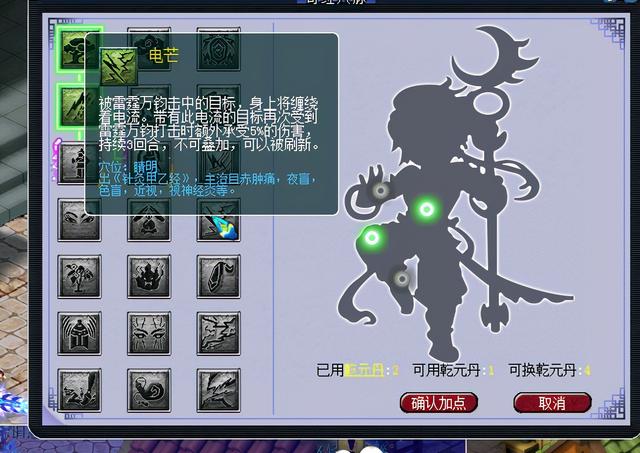 再来说一说关于天宫的一个独特门派技能。电芒是魔天宫最搞笑的一点,本来加8伤害,现在加10%伤害,看起来很强,但是就是搞笑技能,有的挂上电芒后,马上就消失了,有的怪物根本挂不上电芒,能挂上电芒技能的,就是你点选的那个,其他两个是1速和2速怪,无论你是几速,这两个怪你的电芒技能是没有机会打第二次的。周六降妖伏魔,一回合的事,电芒没机会吧?杀秘境,如果你是1速,你挂上电芒,队友开始杀了你的两个电芒怪,你就最多能秒1个电芒。如果你是5速,你挂上电芒,须弥秒你电芒怪,第二回合也是队友先打了你电芒怪,再轮到你秒,所以说电芒在日常任务中最多秒一个目标单位。