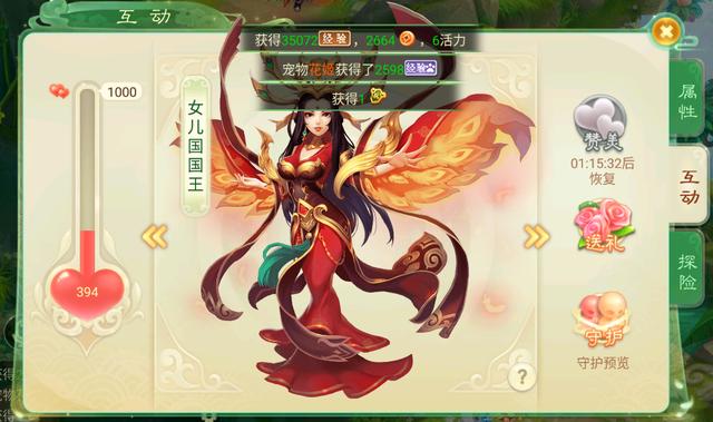 天女玩法是这款游戏独有的玩法,完成主线任务获得天女,然后通过赞美、送礼等方式来增加和天女的好感度,同时也增加自身的属性值。好感度满了以后还可以让守护自己,这样能够让自己的人物更加的好看