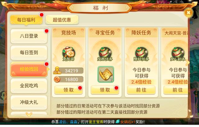 另一个比较好的是日常任务如果头一天没做的话第二个是可以领取相应活动的游戏币和经验,这样即使你今天没时间,也不会让别人拉开等级距离,当然任务的道具奖励是没有的。