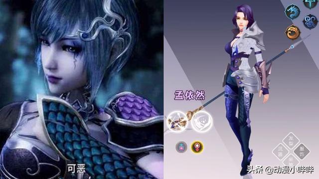 孟依然在《斗罗大陆》中虽然是作为配角登场,但是动画里那冰冷、高傲、邪魅的经典造型,却获得了一大片粉丝的好评。因为武魂是蛇头拐杖的缘故,孟依然的肤色显得略为暗沉,身上也总是散发着一种幽深的气质,在动画版中给人第一印象就像“魔女”般诡异,而手游版的孟依然相对动画版显得正常多了,不仅肤色变回了正常颜色,妆容也是回归素颜状态,这手持蛇杖的样子可是相当霸气!