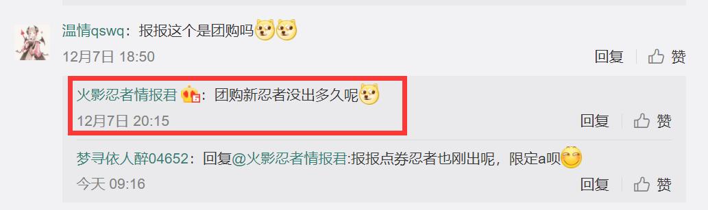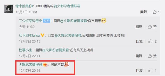 另外,在火影忍者情报君的回复中也可以看出,基本上可以排除团购的可能性了。第一个是先回复了一个玩家的疑问,他只是说“可能不是”,这个“可能”确实会有不确定性,那我们继续来看另一条的回复。