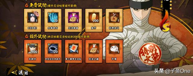 所以言归正传,一年有二次忍法帖,二次博闻录,博闻录的钱基本可以省下来,月卡当安心搞搞忍法帖就可以了,白嫖一些金币和材料见好就收呗