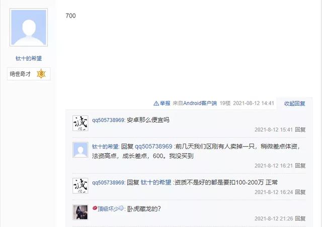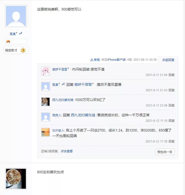 甚至还有网友表示,他所在的大区之前出现过比楼主这只成长低一点御风童子,售价就是600W金币,但他当时没有抢到,有些懊恼。
