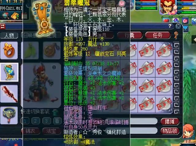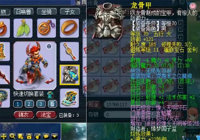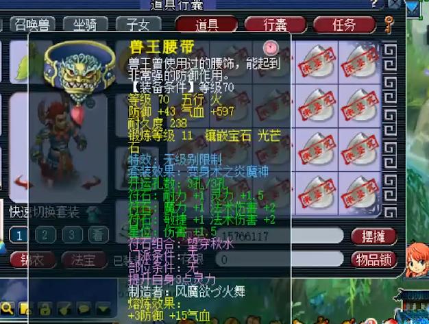 70级的无级别铠甲装备,宝石等级镶嵌到了11级,点化的套装为炎魔神。有点费解的是,无级别装备却修理失败了3次,难道一个70级的珍珠都不舍得卖吗?
