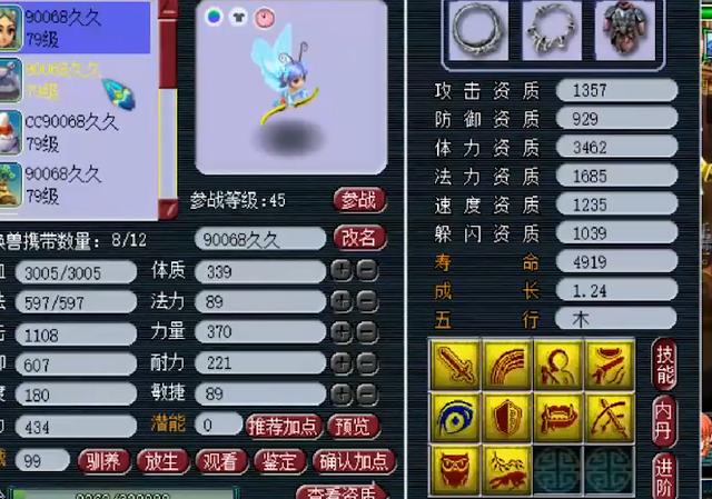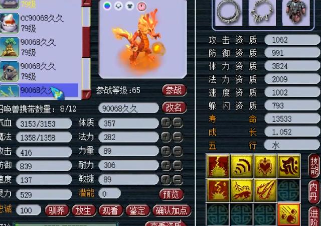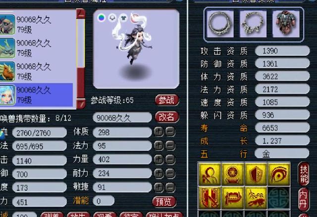 以上就是这个69级角色的装备大致情况,接下来继续了解召唤兽技能资质。