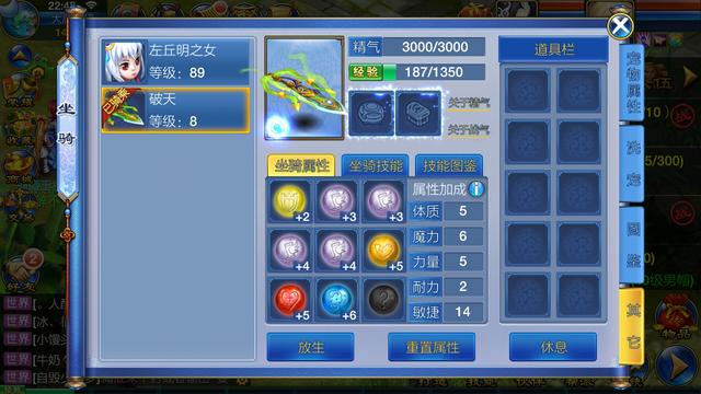 还有坐骑,我的坐骑没有花钱买那两个饰品,因为是平民玩家,所以还没有攒够钱洗属性,好在运气不错,敏加的挺多的