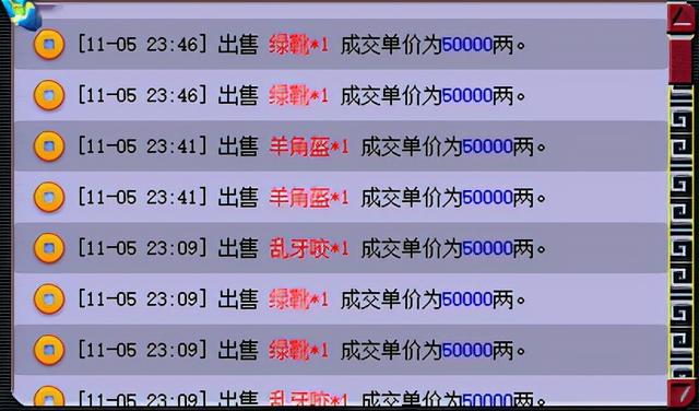 二、50武器装备,用处可分为坐骑好感,孩子师门任务(有属性要求),打造的垃圾特技特效剑陵副本有需求,有专门的5开收购,80000/1个,装备出个实用特技或者常用套装的话,这也是一笔额外的收入了。一般我是武器酒店摆摊18888卖坐骑好感,基本摆上5分钟内就没了。装备留着存上个几车,等乌鸡水陆副本刷新的时候,到五行大师处摆摊,50000/1个,销量不错,利润空间大。(摆摊最好是同样装备一起上2个,把所有的部件都上去)10-40的装备直接飞酒店到装备回购商卖掉,可以回不少的银两,别小看这几千几千的,10车图下来挖个十几二十件的,至少可以回6W的银两。