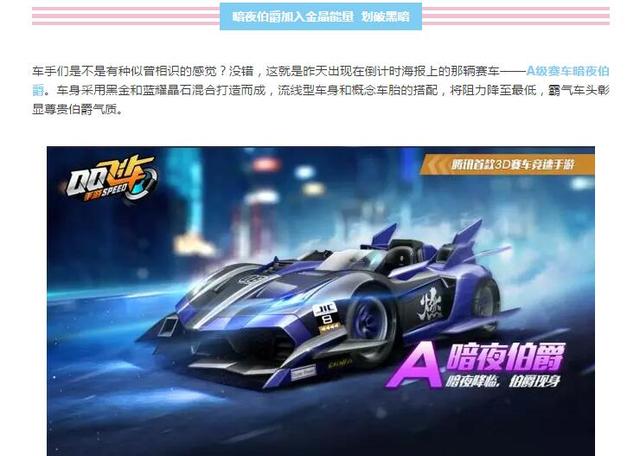 哈喽大家好,今天小白给大家带来的是最新两款赛车的小资讯!在新车上线的时候,天美总是要给自己的赛车做一波宣传,暗夜和白昼的蔚蓝做对比,将两款不一样的赛车同时推上正式服,但是其中的一些宣传“暗示”,却让不少网友的脑洞大开啊!