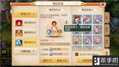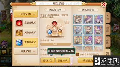 学习后可增加人物评分,也可使用变身卡变换造型,变身后可获得该变身卡的附加效果;变化之术等级越高,可使用变身卡的种类越多。