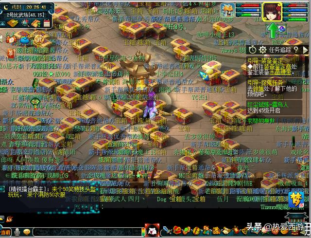 新区大家一定要去参加新手比武。就几分钟的时间,赢了有特殊装备拿,输了有经验拿。另外结束了还有箱子可以捡,只要参加了都可以进去捡箱子。