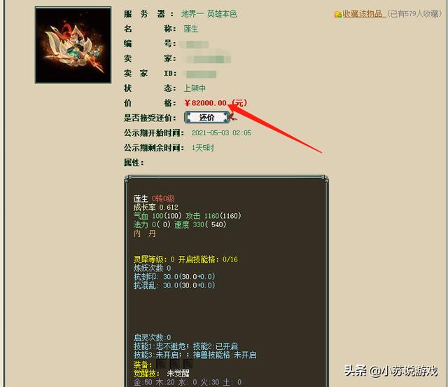 之前很多玩家猜测,首只“莲生”会以什么样的价格出现,有人觉得不会太低,再怎么说它也算是全新神兽,也有人觉得说破大天它也不可能超过前两只,毕竟攻宝宝在PK里的战术作用并不是很大。接下来小苏就来分享一下,目前藏宝阁上唯一一只“射”神兽“莲生”的价格吧~