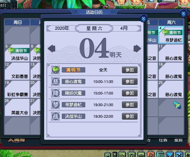 要晓得4月4也就是清明对梦幻的游戏玩家而言是较为关键的1天,由于这天从早晨到晚间全部都有着特殊的主题活动,早上10点开始的慈心渡鬼,下午三点半开始的降妖伏魔,晚间七点再有寻梦追忆,爱PK的游戏玩家晚间还能够参加决战华山打法,喜爱梦幻的游戏玩家可试一下BT版,里边的无级别和神宠全部都是系统给的,并且仙玉还无限用,你可观住攻种号智圣仙获得。可是这类主题活动所有都由于停服没法参加。