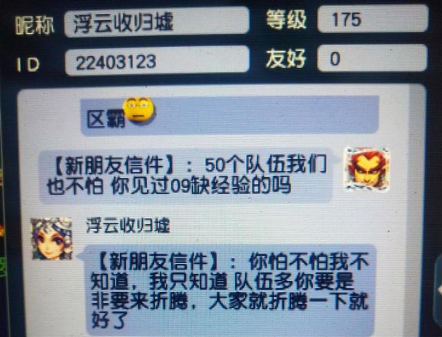 因为上面就是一个109级的天地队伍,对109级的玩家来说,他们的角色经验是没有什么太大的用处的,109级的天地号的技能都已经点满了,经验就是身外物被别人,勾魂掉了经验或许还是好事呢,因为经验掉到一定的范围内以后还能够做师门任务呢,所以上面的这位玩家并不怕区霸的追杀,哪对方有50个175级的队伍。