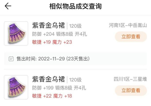藏宝阁再上新功能,相似物品成交查询,更方便比价