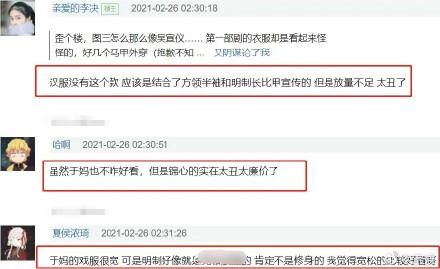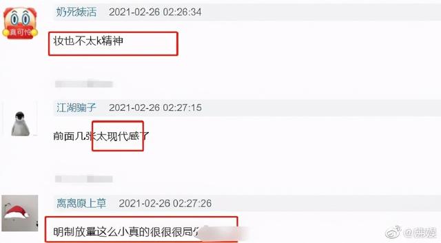 然后,服化道也被吐槽了。有网友吐槽该剧女演员的服装看上去颇为局促,像是在穿紧身衣;