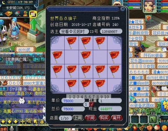 或许有玩家认为这种店铺不怎么赚钱,因为合成旗的利润很低,而且竞争还很大,其实这样的店铺一般前四间都是正常的合成旗,但是后面全部是一些特殊的合成旗,例如跑青龙用的、打宝图用的、刷活动用的、还有长安的全点覆盖的合成旗,这样的旗子价格是比正常的棋子要贵很多的,而且其他玩家也不出售,所以很多人只能在这里购买,另一个是在鬼区的话这种店铺是特别赚钱的,因为鬼区是没有人摆摊卖合成旗的,玩家想要买的话只能在店铺里买。