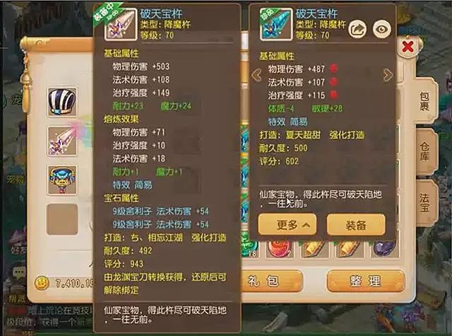 让人有些担心的是,前面大部分的降魔杵都是白板属性,中间偶尔穿插着一些单个绿字属性或蓝字属性的装备,这些装备都直接被号主分解了。眼见剩下的珍品已然不多,难道说号主此次的激情打造就将这样无功而返了吗?灵儿不禁为这位号主捏了一把汗。