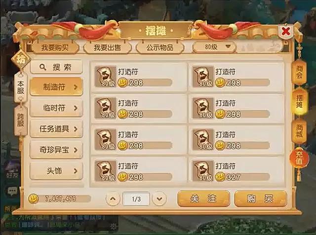 2、在摆摊里购买,有玩家有不需要的珍品装备会拿出来出售,用相应的金币进行购买