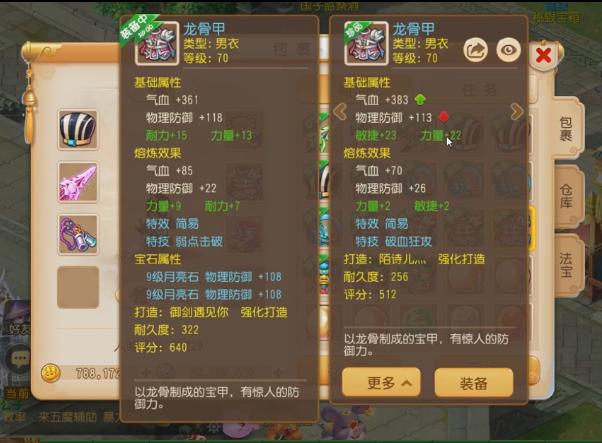 70级简易特技的衣服也有两个,一件是简易+弱点击破的组合,而另一件简易衣服的特技则是破血狂攻。装备中的衣服绿字属性力耐双加44,而包裹里这件衣服绿字属性更是达到了力敏双加49,不得不说这两个衣服都是比较暴力的。