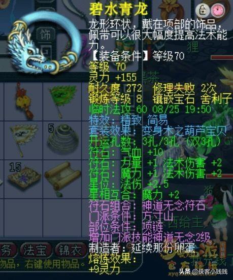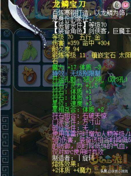 70级的无级别刀,11锻太阳359的伤害,熔炼后加了21的魔力,减少了1点体质,武器总共提供了104点法术伤害加成,还是蛮犀利的。
