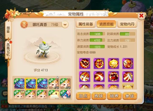 最后压轴的是一只11技能的龟速血宠,相信龟速血宠大家见过的都不少了,但是这只忘川童子可不一般,体力资质非常的爆炸,虽然速度资质只有726,但是还有一个高级迟钝的技能,让缺点瞬间变成优点,血量高,速度慢,非常完美的一只龟速宠物,即使差一个技能全红,也丝毫不影响这只龟速血宠的优秀。