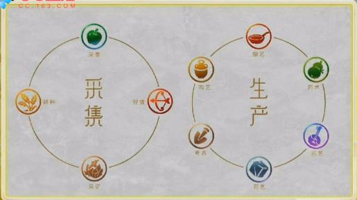 生产系:厨艺,药术,乐艺,石艺,考古,陶艺。