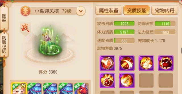 有些遗憾的是880的速度资质与1.178的成长值并不是太高,对后期的面板属性有不小的影响。