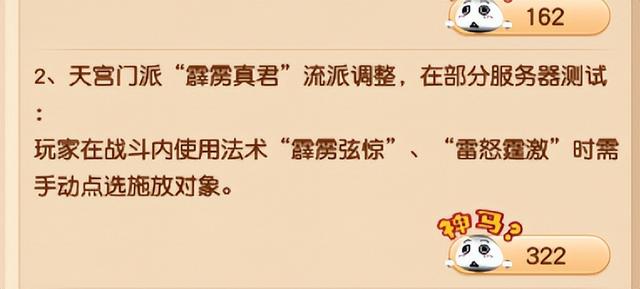 每周例行维护公告,本周对天宫的经脉进行了微调。