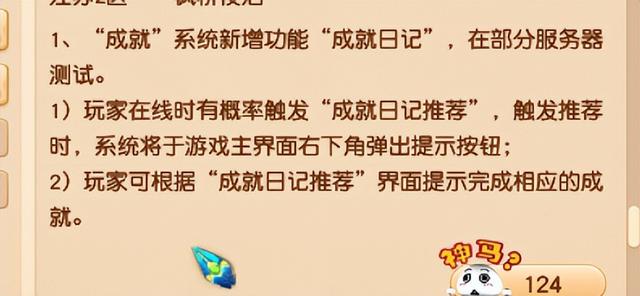 3、新增一个成就日记推荐,在线时有几率触发右下角的提示,然后根据提示完成成就。