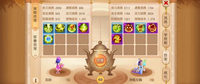 最后再次确认一遍,保证两只宠物没有重复的技能,这名玩家毫不犹豫的点下了合宠。这两只宠物会碰撞出怎样的火花呢?为花妖提升资质的想法能够实现吗?让我们接着往下看!