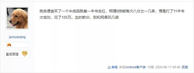 看到这名玩家懊悔不已,有网友也表示还是直接购买成品宠物更香,因为自己之前就贪便宜购买了一只半成品宠物,本来想着就差一本高级技能全红,只需要花费几十万金币就打成了,结果没想到的是最终却花费了155W金币才打成。