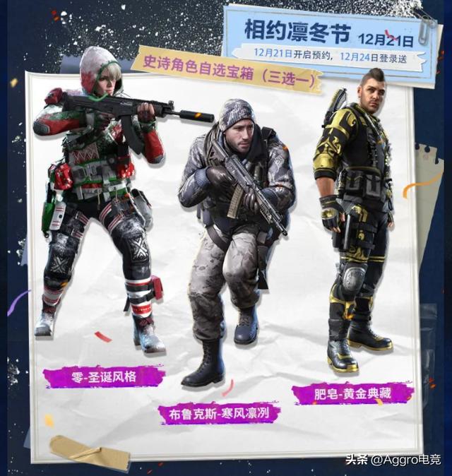 此外,本次凛冬节还有各种皮肤免费领取,12月21日可靠累计登录免费获得史诗角色自选宝箱(三选一),12月23日可以累计登录获得星空探索者系列武器。